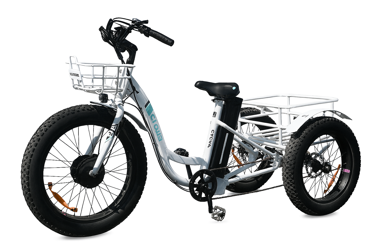 Frame | Aluminum 6061. Cargo baskets come in white. |